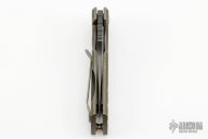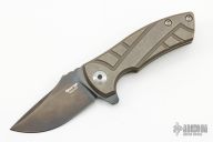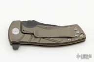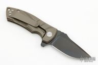 This ESV Flipper by Les George features a DLC finished Magnacut blade with notched thumbrest and a flipper. The handle has a milled, anodized and stonewashed titanium frame and titanium pocket clip for tip up carry. Smooth function with a lock up and nice detent. New from maker! Comes with a zippered case.