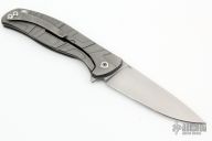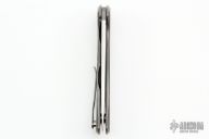 This Model 95 framelock flipper from Shirogorov has a flat ground and tumbled blade with machined, anodized, and tumbled titanium frame. Excellent lockup, crisp detent, and perfect seating. Knife comes in original box, COA with microfiber cloth. Has been resharpened very nicely, has a couple light scuffs, otherwise excellent condition.