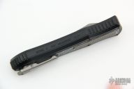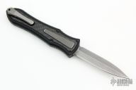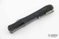 This knife is a Deadlock Model C by Grant and Gavin Hawk. It has a double-edged stonewashed blade. The handle has a carbon fiber and black aluminum frame with a tip down spring clip, titanium. The thumb slide on the handle is also titanium and handle has titanium overlays. Comes with a cloth pouch. Grant and Gavin Hawk set out to create a double action OTF with no blade play.... They did it, NO blade play. Comes with tool, cloth pouch. Excellent Condition.