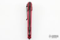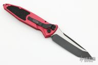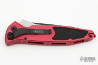 This Socom Elite Auto has a two-tone tanto blade with notched thumbrest. Red aluminum handle with non-slip inserts. Stainless steel clip, tip down carry. Glass breaker. Dated 04/2019 and s/n 3046. Comes with original box. Has a couple light scuffs, otherwise excellent condition.