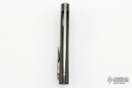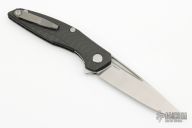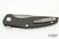 This Model 111 by Shirogorov Knives has a tumble finished blade with a notched thumbrest and flipper. The handle has carbon fiber scales, titanium backspacer and a matching tip up clip with hidden screws. Includes original box and COA. The hardware on the frame and clip show a little marring. Excellent Condition otherwise.