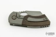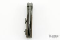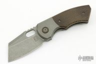 This Production Slim by Berg Blades features a stonewashed blade with notched thumbrest and thumbhole. The handle has a stonewashed titanium frame with matching backspacer and tip up clip, micarta scales and pivot collars. Comes with zippered case and COA. Nice detent, lockup and blade seating. Excellent condition.