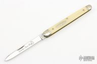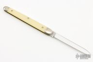 The Fruit Knife or Melon Knife is a classic slip joint pattern with a long, slender spear point blade used for cutting samples from fruit (and sometimes meat) for quality inspection. Due to the nature of use materials that were resistant to corrosion and antimicrobial or easy to clean were chosen. The #89 from Great Eastern Cutlery exhibits their high quality fit and finish and comes with stylish grooved bolsters and a polished stainless steel blade. This version comes with Lemon Brite glow-in-the-dark acrylic covers and a 420HC stainless steel blade.