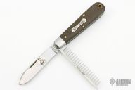 Blade: This utilitarian slip joint folding knife has two blades: a flat ground, satin finished 1095 carbon steel spear point and Beard Refuse Removal tool (a.k.a. a comb). The utilitarian spear blade handles a variety of daily cutting tasks with ease equipped with a spine swedge for a fine point for piercing and detail work. The BRR easily removes crumbs or other leavings from your facial hair regardless of style. Open via the nail nick or rounded end with snappy half stop operation for added safety. The spear blade has an "Urban Jack" etching in addition to the standard blade stamps.