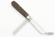 The Tidioute model 15 Barlow is a classic, traditional profile, single blade slip joint folder that has a timeless appeal. The Barlow pattern originated in Sheffield England, but it is American as “apple pie” thanks to the popularity in postcolonial America. A modified version of the classic design, the Urban Jack Knife retains the spear blade and teardrop handle with short bolsters for a more modern look paired with the BRR Tool (comb), popular for urban and rural carry. This version comes with a satin finished blade and OD Green canvas Micarta covers.