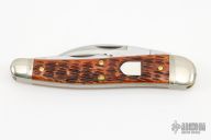 Built on an innovative split spring design, the classic whittler pattern is a perennial favorite among users and collectors alike. The GEC #38 English Whittler retains the timeless serpentine handle shape and large Wharncliffe primary blade paired with two smaller blades for fine work: one coping and one pen. Satin finished blades are handsome and utilitarian while polished and grooved bolsters lend enduring style. This Northfield UN-X-LD version comes with Burnt Orange Jig Bone covers and crest shield.