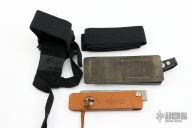 Harness Assembly for Mark I with original box and papers. Comes with a vintage Gerber folding sharpening steel. Excellent condition.