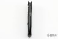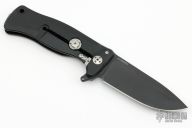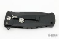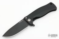 This SR11 by Lion Steel features a black blade with flipper. The handle has a milled and anodized aluminum integral frame with tip up reversible stainless steel clip, has Rotolock and a stainless lockface insert. Comes with a zippered case. Has a few light scuffs, otherwise excellent condition.