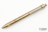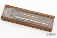 This Custom Saga pen from Grimsmo features brass and titanium components. Custom made wooden case and extra ink insert included. Excellent condition.