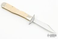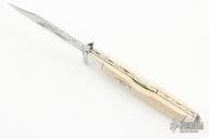This Cheetah lock back Auto from Case Knives features a mirror polished blade with a single nail nick, fileworked spine. The handle has nickel silver bolsters, front and rear, and swing guard, and the scales are mammoth ivory, fileworked stainless steel backspacer. Case knives only ever made 2 of them had mammoth ivory on them. Excellent Condition.