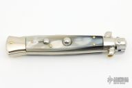 This Fosolone Auto by Renzo Passcotto features a mirror finished blade, honey horn scales, brass liners and nickel silver bolsters. Has safety. Excellent condition.