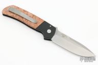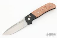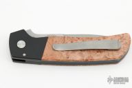 This ATCF Auto by Pro-Tech features a stonewashed Magnacut blade with notched thumbrest. The handle has a black aluminum frame with maple burl scales, tip up 3d milled titanium clip with hidden screws. Comes with original box and papers. Excellent Condition.