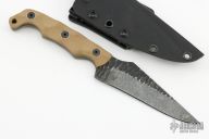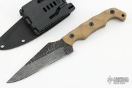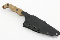 This TU2 by Stroup Knives features a dark tumbled drop point blade with sculpted flats and a full tang construction.  .195" Blade Stock.  1.284" Blade Depth.  The handle features sculpted G-10 scales.  Includes a kydex sheath with a Tek-Lok.  Includes the original box.  Excellent Condition.