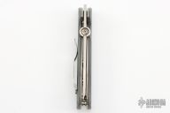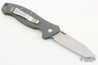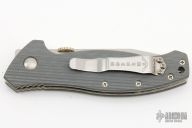 This Specwar-B-TF by Emerson Knives features a tanto black tumbled chisel ground blade with knurled thumbdisc. The handle has gray G-10 scales, titanium liners, and stainless steel pocket clip and barrel spacers. #4003. Comes with original box and papers. Has a couple light scuffs and scratches, otherwise excellent condition.