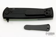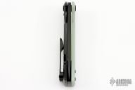 This Chaves Ultramar Liberation Drop Point features a black finished blade with the Chaves logo. The handle is made up of jade G-10 and black PVD coated titanium frame, skull pocket clip (positioned for tip up carry), and matching titanium backspacer. Blade is centered when closed, and locks up with no play. Comes in the original packaging with extra hardware. Excellent condition.