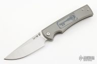 This Chaves Ultramar Liberation Drop point features a satin finished blade with the Chaves logo. The handle is made up of tumbled titanium, skull pocket clip (positioned for tip up carry), and a matching titanium backspacer. Comes with original box.  Excellent Condition.