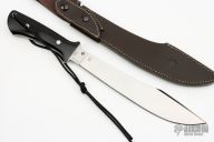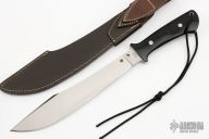 The Spyderco Darn Dao knife is based on a rare custom design by Bob Lum, and was inspired by the "single knife" broadsword of classic Chinese martial arts. This formidable fixed blade is equipped with a satin finished, full-flat ground CPM-154 stainless steel blade with an unsharpened swedge to offer a fine point. Its full tapered tang is fitted with contoured black G-10 scales that flare at the bottom for a positive grip. The Darn Dao is paired with a handcrafted leather sheath with a thumb-break-style snap to provide secure retention and a quick draw. The Darn Dao is a Spyderco "Flash Batch", which is similar to a Sprint Run, but features a brand new design not previously produced. Each knife in this Flash Batch is individually numbered. This is a one-time-only production run. This knife is #0589 of 1200. Comes with nylon zippered case. Excellent condition.