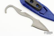 This SMR features a bead blasted dagger style blade with partial serrations and a full tang construction. .162" Blade Stock. 1.039" Blade Depth. Includes a blue plastic sheath and the original box. Excellent Condition.