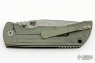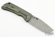 This MAC2 features a stonewashed drop point Magnacut blade with dual thumbstuds and a notched thumbrest.  The handle features a green atomic FRAG titanium frame with a matching tip up pocket clip. Includes the original box.  Excellent Condition.