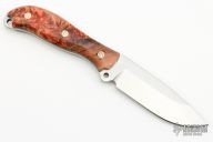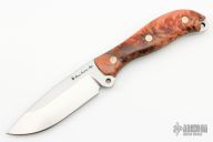 This Mountain Duty by Busse features a satin finish drop point blade, .190" blade stock, 1.152" blade depth, full tang construction with black/gray liners, and wood scales and a lanyard hole. New from maker.