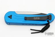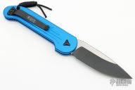 This LUDT side opening automatic by Microtech has a black finished blade with a standard edge and a contoured blue aluminum frame. Stainless steel clip. Dated 01/2023 and serial number 29503. Comes with original box and papers. Excellent condition.