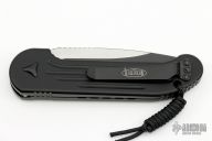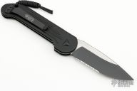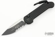 This LUDT auto by Microtech Knives has a black blade with a partially serrated edge and a black aluminum frame with all black hardware. Stainless steel clip. Dated 01/2023 and serial number 29315. Comes with original box. Excellent condition.