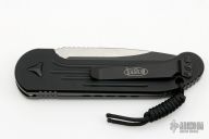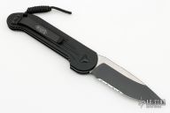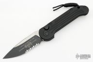 This LUDT auto by Microtech Knives has a black blade with a partially serrated edge and a black aluminum frame with all black hardware. Stainless steel clip. Dated 01/2023 and serial number 29396. Comes with original box. Excellent condition.
