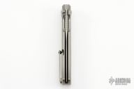 This is a limited release Liong Mah Design creation! The Model 18 is a folding flipper knife featuring integral titanium construction, meaning the frame is crafted from a single piece of titanium, expertly polished. The handle is inlaid with unique materials to give these production knives a one-of-a-kind appearance. The blade is made from CPM S90V steel, top-tier stainless steel that boasts excellent edge retention and rust resistance, making the Model 18 as fit for your pocket as it is for a display case. Celebrate 18 years of knife industry experience with the Liong Mah Design Model 18!