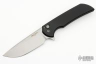 This Mordax by Pro-Tech is a Ferrum Forge design and features a stonewashed drop point blade. The handle has a black aluminum frame with black tip up stainless steel clip. Comes with original box and papers. Magnacut Blade. New from Maker!
