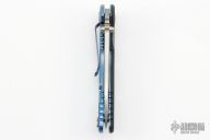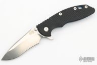 This XM-18 Flipper by Rick Hinderer Knives features a 3.5" stonewash finished blade, notched thumbrest and flipper, dual thumbstuds. The handle has a black G-10 scale, and stonewashed and anodize finish titanium handle/clip. Clip can be mounted for tip up or down carry. Nice lockup, seating, and detent. Comes with original box, and washers. Excellent condition.