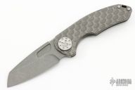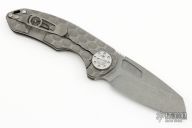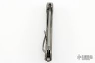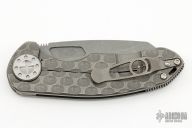 This F3 by Curtiss Knives features a stonewashed Magnacut blade with notched thumbrest. The handle has a sculpted titanium frame with a matching tip up titanium clip. Satin stainless hardware. Rides on bearings, nice detent and lockup.  Comes with original box and zippered case.  Excellent condition.