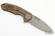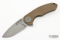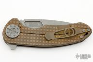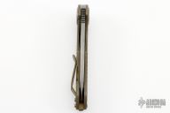 This F3 Medium by Curtiss Knives features a stonewashed Magnacut blade with notched thumbrest and flipper. The handle has an anodized frag milled titanium frame over notched titanium backspacer, matching titanium tip up clip. Smooth and fast opening using a Caged Bearing System. Nice blade seating, detent and lock up. Includes a zippered case.  Excellent Condition.