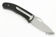 "The new Lobo automatic is a double-action automatic knife that can function as a one handed opening locking-liner knife or be instantly fired in the automatic mode. The Lobo has a 3.5 inch blade to handle any cutting chore and a convenient stainless steel pocket clip. The automatic firing mechanism is hidden under the handle and is activated by sliding the left side handle scale towards the top of the knife. Because there are no apparent buttons on the outside of the handle the fact that the Lobo is an automatic is known only to its owner. This makes the Lobo convenient to carry and use anywhere." This Lobo features a bead blasted blade and black G-10 handle. Comes with zipper case. Has a couple light scuffs excellent condition otherwise.