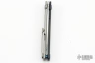 This MS3 Manhattan Special by Michael Zieba features a stonewashed blade with flipper. The handle has a black G-10 and blasted titanium frame with matching tip up clip and anodized titanium hardware, has stainless steel lockface insert. Rides on bearings, nice detent, lockup and blade seating. Excellent condition.