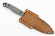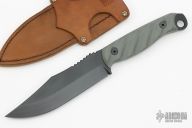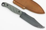 This Crow Scout by Half Face Blades features a cerakote finish blade with notched thumb ramp, .144" blade stock, 1.412" blade depth, full tang construction.  The handle has sculpted grey G-10 scales.  Comes with a leather belt sheath. Excellent Condition.