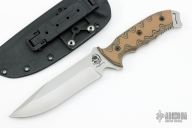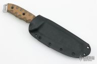 This Rival by Anglesey features a bead blast finish blade with notched thumbrest, .238" blade stock and 1.3" blade depth, full tang construction with g10 scales. Comes with kydex sheath. Has some scuffs and scratches, great condition otherwise.