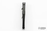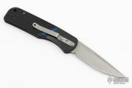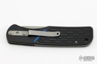 This stylish Blackie Collins designed automatic knife features an incredibly thin and lightweight handle that is ideal for everyday carry. The handle is black anodized aluminum with a nice texture for grip and a safety lock for the blade. Includes a deep carry pocket clip (tip-down). The bead blast finished ATS-34 stainless steel blade has a plain cutting edge. From what we understand Randall King's company has a hand in the production of this knife. Has a few light scuffs, otherwise excellent condition.