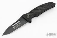 This XM-3 Prototype by Ontario Cutlery features a black blade. The handle has black G-10 scales, black stainless steel liners and tip up reversible clip. Has a safety on the spine. Comes with a zippered case. Excellent condition.
