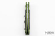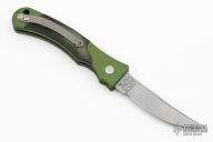 This Small Persian Fighter from Rob Dalton features a bead blasted finish blade and a green aluminum frame with black linen micarta inserts on both sides. Bead blast finished clip. Strong and fast coil spring opening. Has a few light scuffs, otherwise excellent condition.
