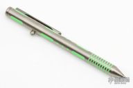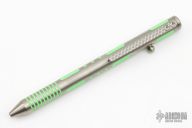 Captain Axel Custom TiBolt by Brian Fellhoelter. Has UV green coating done by Axel. Baby Dragon Engraved Titanium Clip. Has a couple of very light scratches, otherwise excellent condition. Comes with original tube.