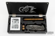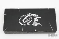 We brought back the custom box from last year that will house all parts of the complete set, but we put it through the ringer and applied the BPU theme to the box and lid. The aluminum display started with the base of the box being a SOLID billet of aluminum and then we CNC milled the entire box from that solid billet inside and out! The lid is also aluminum with adjustable magnetic closures to keep the lid closed and custom made titanium lid stops that fold neatly into the base. Also, the lid is mill engraved with the RHK Horse Head logo inside and out! The Type 3 black hardcoat anodizing is then highlighted around the edges of the lid making for a very nice, elegant look! The display box alone is a real treat in quality!!
