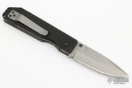 Tactical folder made by Buck with Strider engineering. Bead blast finished blade with notched thumbrest and dual thumbstuds. The handle has black G-10 scales, bead blasted titanium liners, tip up reversible carry bead blasted stainless steel clip. Comes with zipper case. Has some scuffs, otherwise excellent condition.