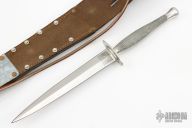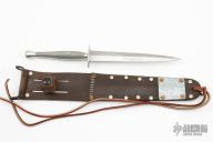 This USMC Marine Raider Stiletto by HG Long & Co and EK Knives features a double edged satin finished blade, .158" blade stock and .888" blade depth, hidden tang construction with cast zinc handle. Comes with original box and sheath. Excellent condition.