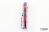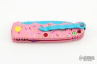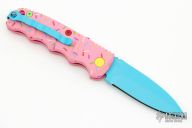 Have you ever been unfortunate enough to have to share a donut? Your plight only gets worse when you find you have to cover your high-speed, low-drag, modified, custom, mirror-edged piece of pocket jewelry in sticky sweetness. What you need is a knife designed from the ground up to go to war with a donut. And although its path to existence was unorthodox, the Dessert Warrior is here! This automatic will snap open before anyone can take more than their half of the donut. The handle is bright pink with sprinkles, and the blade has a candy blue finish, making the knife blend in with the pretty pastries of the shop. Gone are the days of not having the right tool for the job!