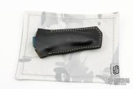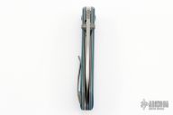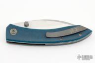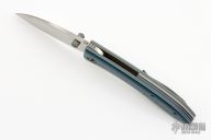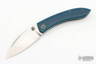 This Shihlin by Jared Oeser features a hand rub satin finished blade with false top edge and dual thumbstuds. The handle has Blue Westy scales, black/grey G-10 liners, bead blasted titanium liners, black/blue/grey G-10 backspacer, bead blasted titanium tip up clip with hidden screws. Nice detent, lockup and blade seating. Comes with COA dated June 30, 2022. Comes with a custom hank with Jared's logo and original box and sheath. Excellent condition.