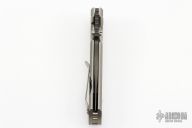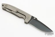 This Project VECP 3.0 from Les George features a black DLC finish CNC flat ground blade and a tumble finish titanium frame. Tip up titanium clip. Phosphorus bronze washers. Smooth action. Notched Ti backspacer. Nice blade seating, detent and lockup. Excellent condition.
