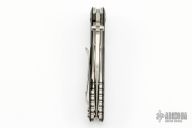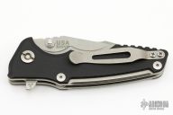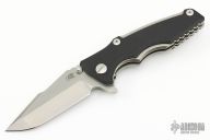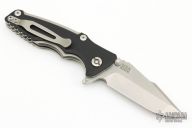 This Eklipse Tri-Way by Hinderer Knives features a stonewashed harpoon spanto blade with dual thumbstuds, flipper and notched thumbrest. The handle has a tumbled titanium frame and liner with a textured black G-10 scale and tumbled titanium clip and hardware. Nice detent, lockup and blade seating. Comes with a padded zippered case.  Excellent Condition.