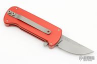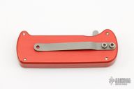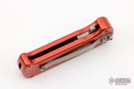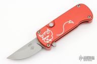 This OTF automatic by Rob Dalton features a bead blast blade and red devil aluminum handle. Titanium clip. Fires via push button and retracts by holding the button and moving the slider on the side of the knife. Very powerful action. Excellent condition. We were told this is 1 of 50 in this configuration.