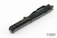 This UTX-85 by Microtech features a shadow finished blade with a standard edge. The handle has a black aluminum frame, black stainless steel tip down clip. Dated 10/2022 s/n 016. Comes with original box and papers. Excellent condition.