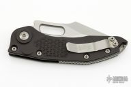 This Stitch Auto by Microtech Knives features a stonewash finished blade and false top edge, notched thumb and finger rests. The handle has a black anodized and milled aluminum handle with a bead blasted titanium backspacer and a bead blasted stainless steel clip, tip up carry, lanyard hole at the butt. Comes with original box and papers. S/N of 6785 and dated 05/2021. Excellent Condition.